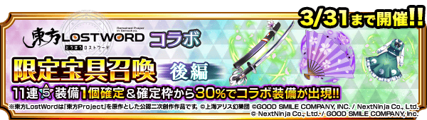 確定枠から30%でコラボ装備が出現!「東方LostWord」コラボ限定ピックアップ宝具召喚 後編