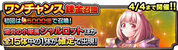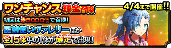 3/26〜4/4 人気のユニットが復刻で登場!『熾炎・星剣W降臨祭』!ワンチャンス錬金召喚も!
