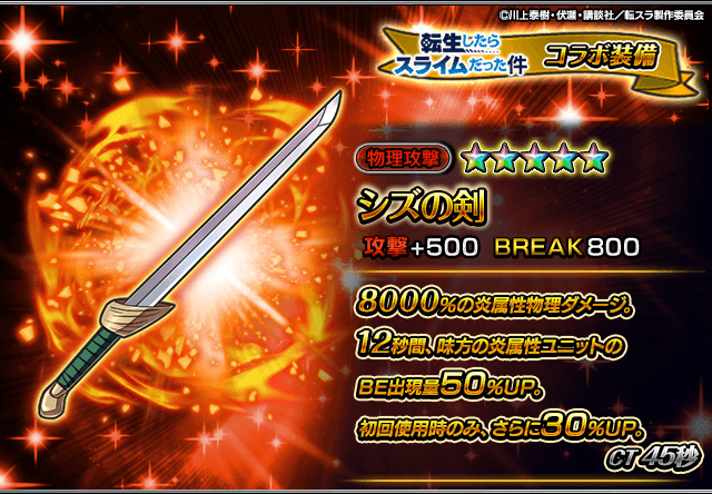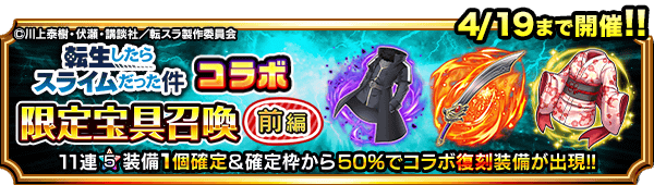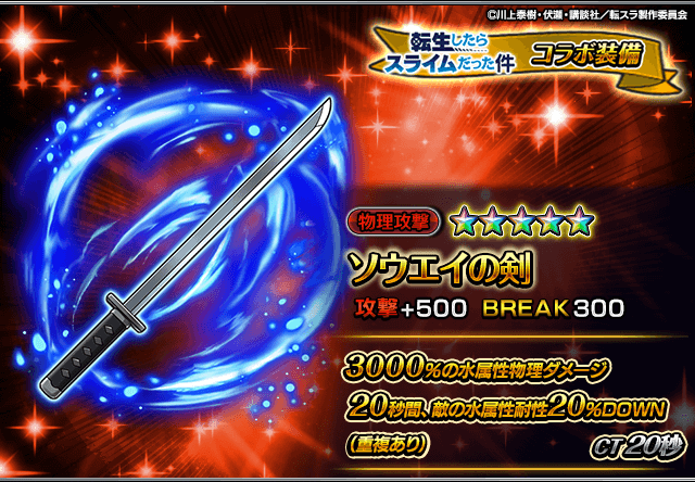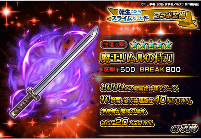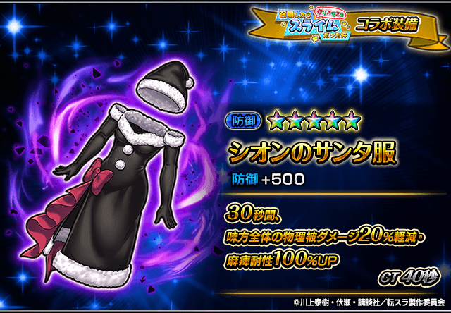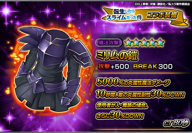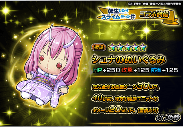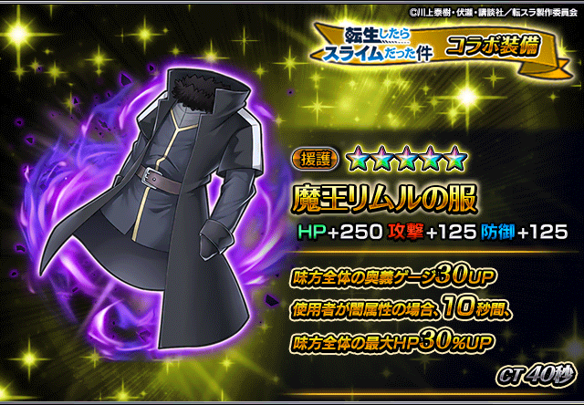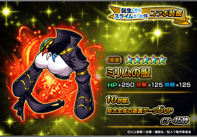 また、『転生したらスライムだった件』コラボユニット・コラボ装備を編成することによりコラボイベントクエストの交換アイテムの獲得数がUP!イベントを有利に進めることができるようになりますので、ぜひこの機会にご利用ください。