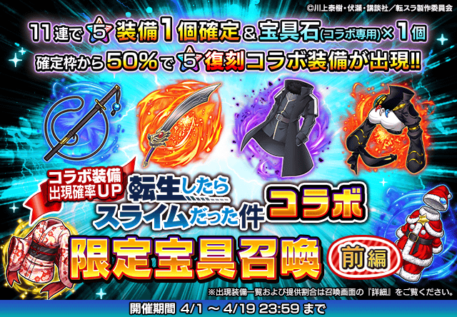 確定枠から50%で復刻コラボ装備が出現!『転生したらスライムだった件』コラボ限定ピックアップ宝具召喚 前編