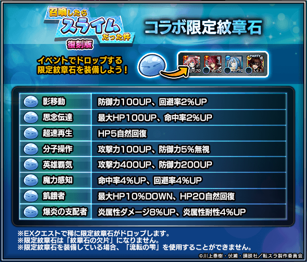 『転生したらスライムだった件』との新コラボイベントクエスト『召喚したらスライムだった件 跳兎祭 前編』および、復刻イベントクエストの開催についてお知らせします。