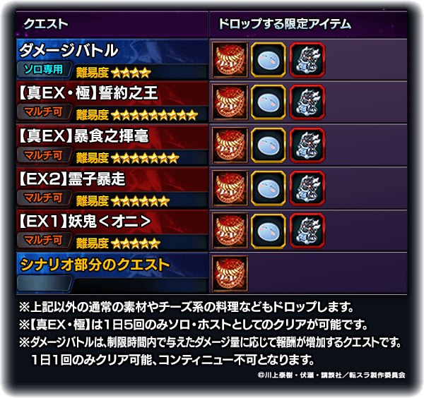 - 初回クリア時のみユニット『リムル(スライムver)』を獲得可能