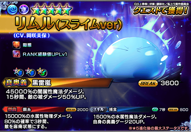 - 『リムル(スライムver)』を覚醒、LUCK120まで限界突破可能