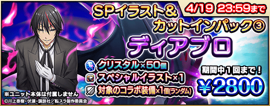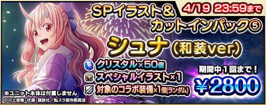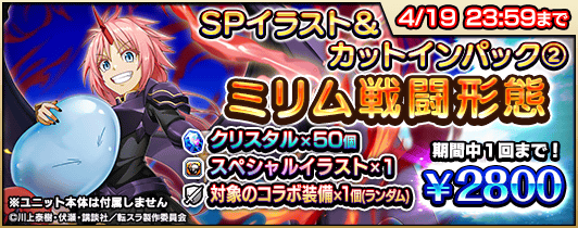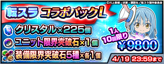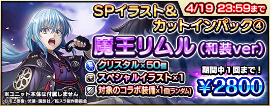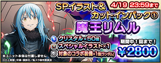 『転生したらスライムだった件』コラボの開催に伴い、復刻コラボユニットのスペシャルイラスト入りのパックや、クリスタルなどがセットになった『コラボ記念パック』4種を販売します。