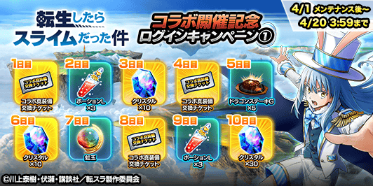 『転生したらスライムだった件』とのコラボ開催を記念し、下記の期間、ログインキャンペーン①を開催します。