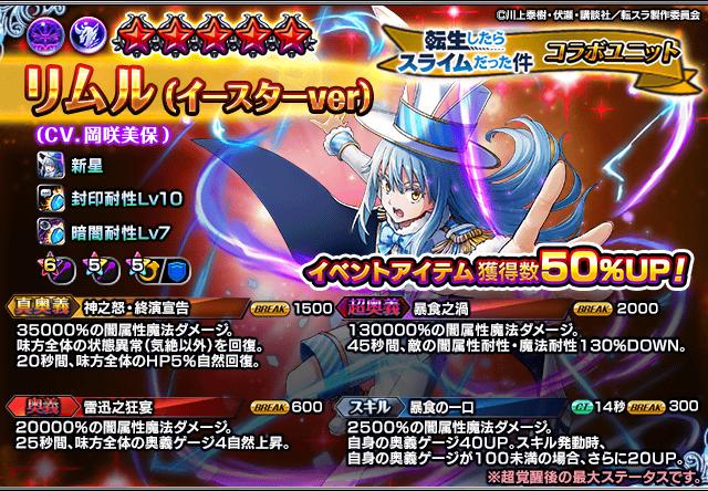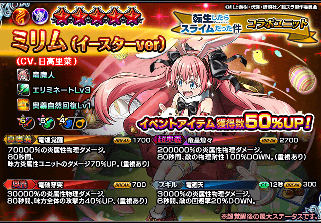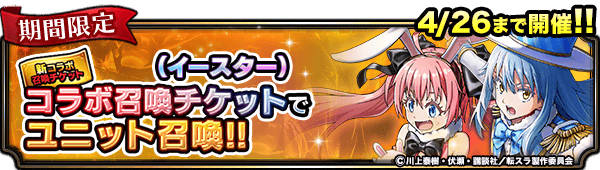 ※『コラボチケットユニット召喚(イースター)』では『イースターver』の『リムル』と『ミリム』が登場します。