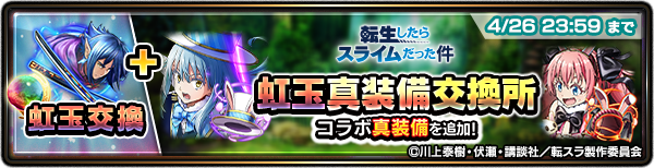 また、『転スラ』コラボユニット・コラボ装備を編成することによりコラボイベントクエストの交換アイテムの獲得数がUP!イベントを有利に進めることができるようになりますので、ぜひこの機会にご利用ください。