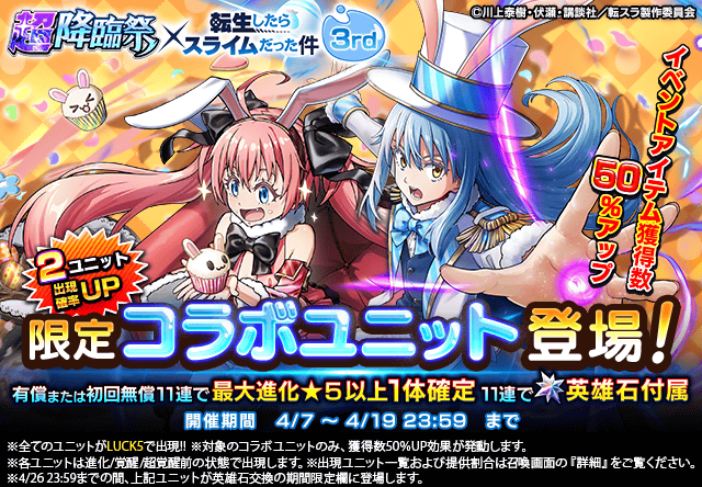 4/7 イースターverのリムルとミリムが初登場!『超降臨祭×転生したらスライムだった件』3rd