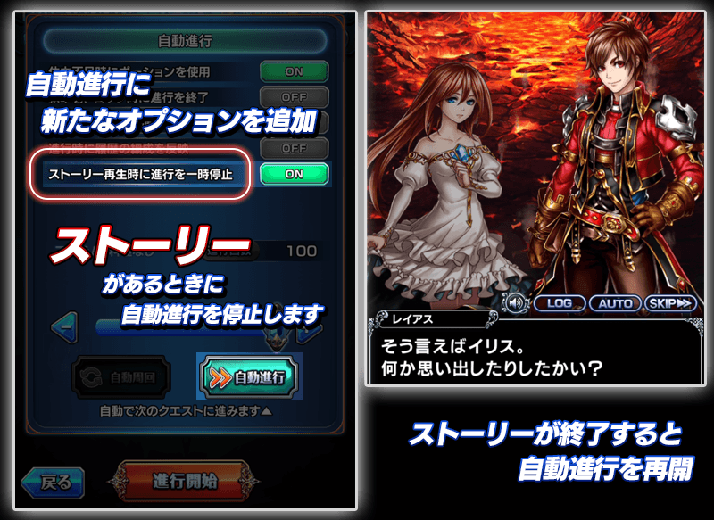 ・通常のクエスト自動進行にシナリオで停止する機能などを追加