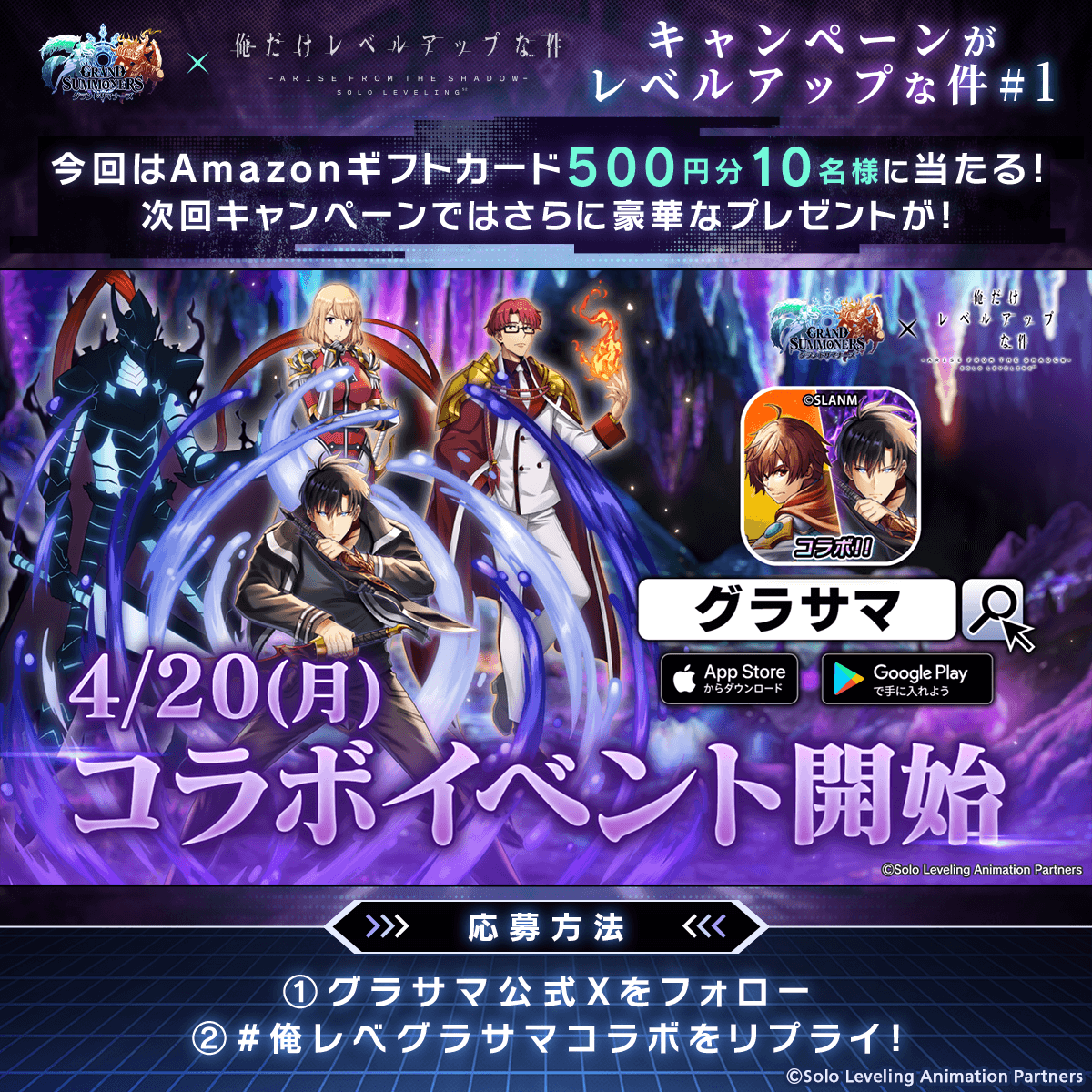 2026年4月17日(金) 20:00より、『俺だけレベルアップな件』とのコラボを記念したXキャンペーン第1弾を開催中です。